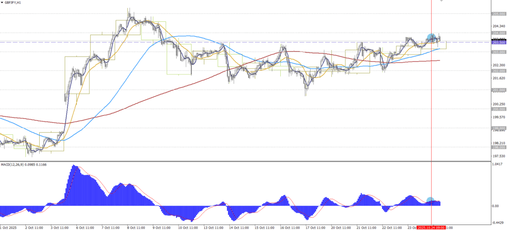 届いてはいないが、キリ番203.000を背に押し目上昇と判断!