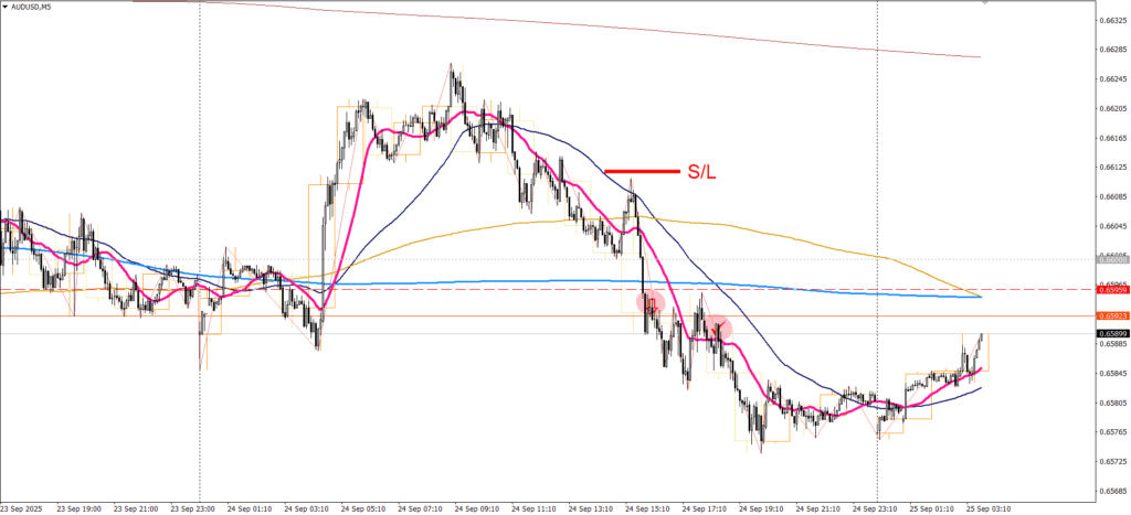 5分足エントリーポイントとしては戻り転換点というわけではなく、むしろ伸びている最中でした。