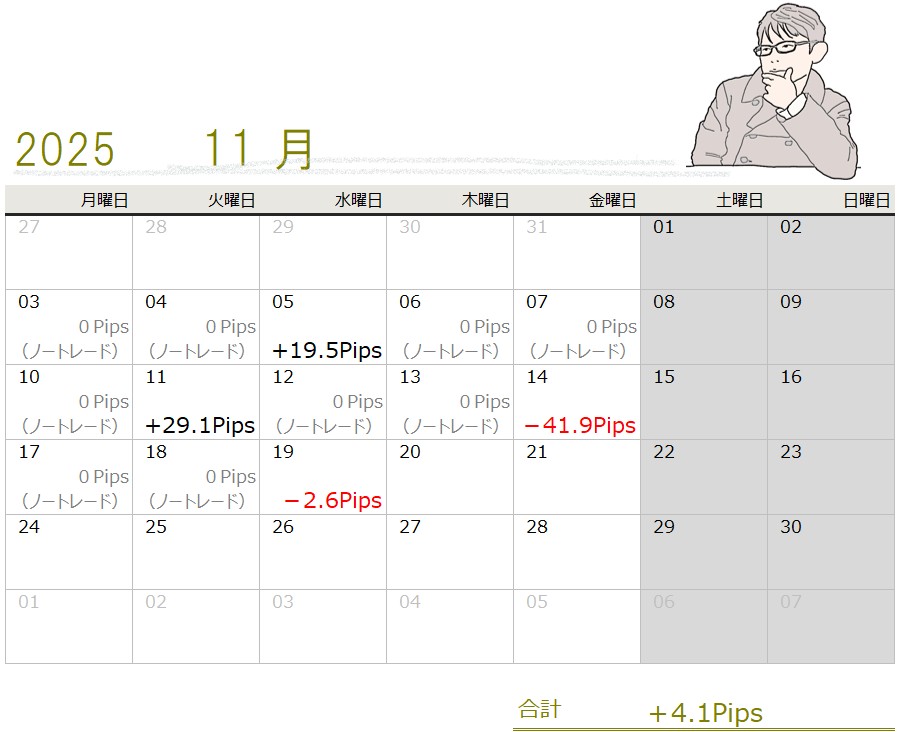 2025年11月19日(水)トレード結果報告(-2.6Pips)!