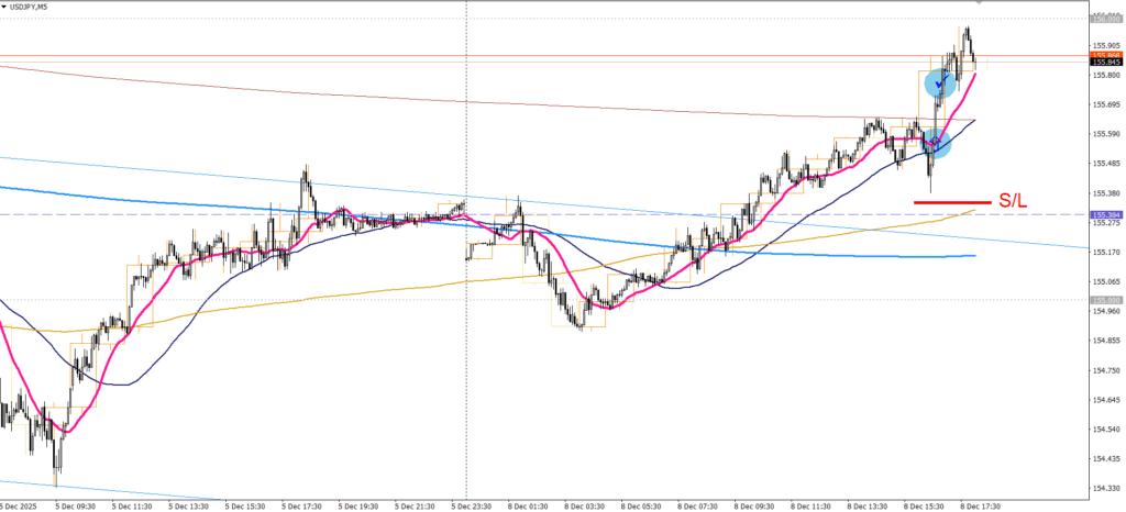 1時間200SMAが近くにあって止められることは当然懸念材料としてはありましたが、やはり、4時間足でひいたチャネルライン上限ブレイク上昇、が強い根拠となりました。